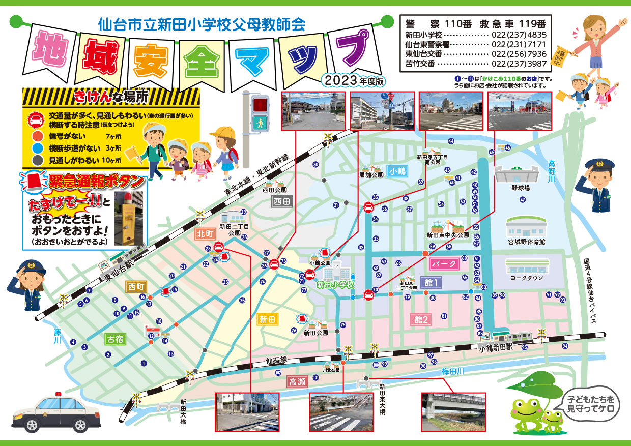 小学生の安全を願い、親子でお子さんの非常事態時の行動や、危険な通学路の確認ができるよう、見やすく、お子さんの目に入りやすい様な配色を心がけ制作しました。